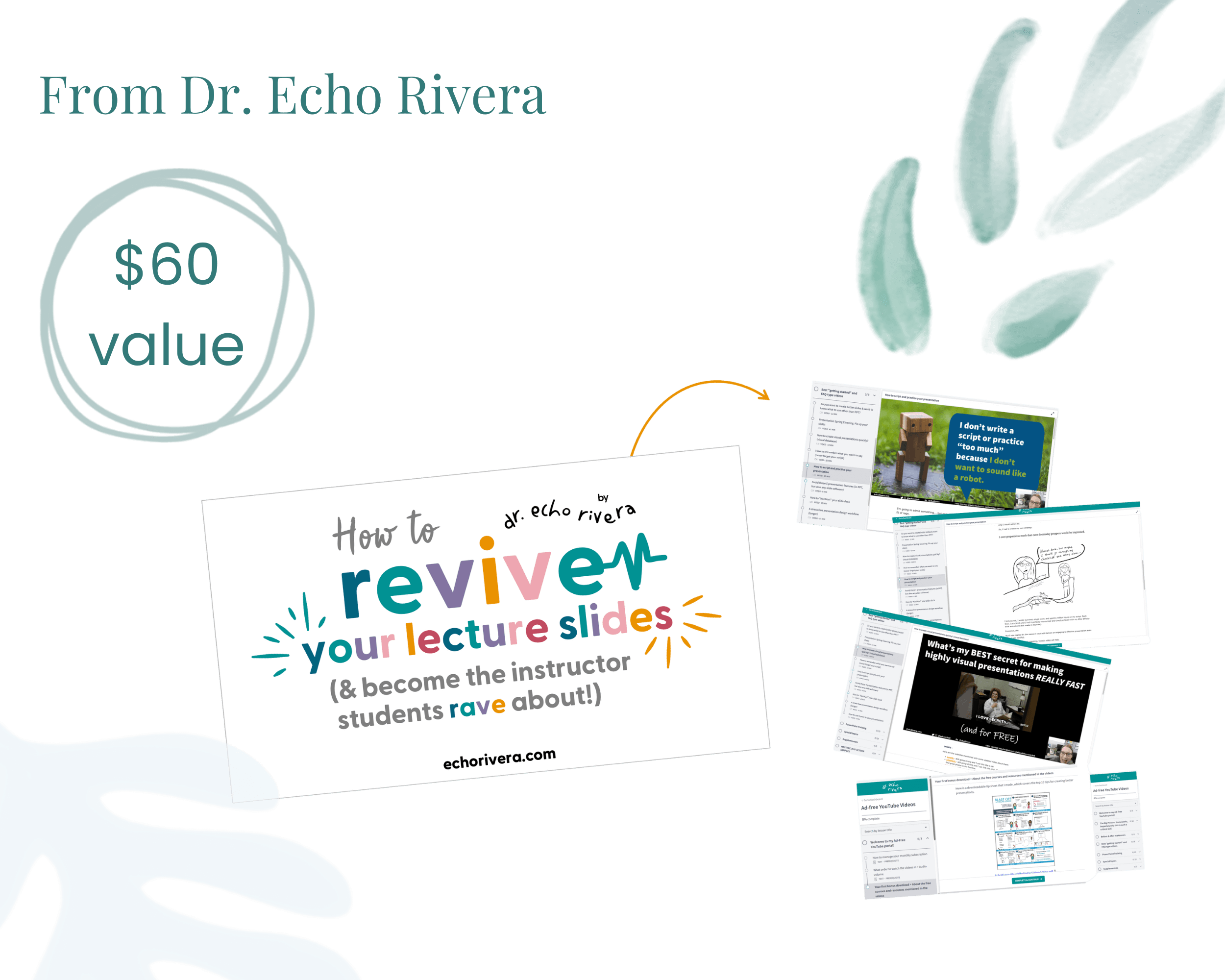 One-year subscription to 59 (and counting!) videos packed with tips to help you design better lectures and lecture slides.