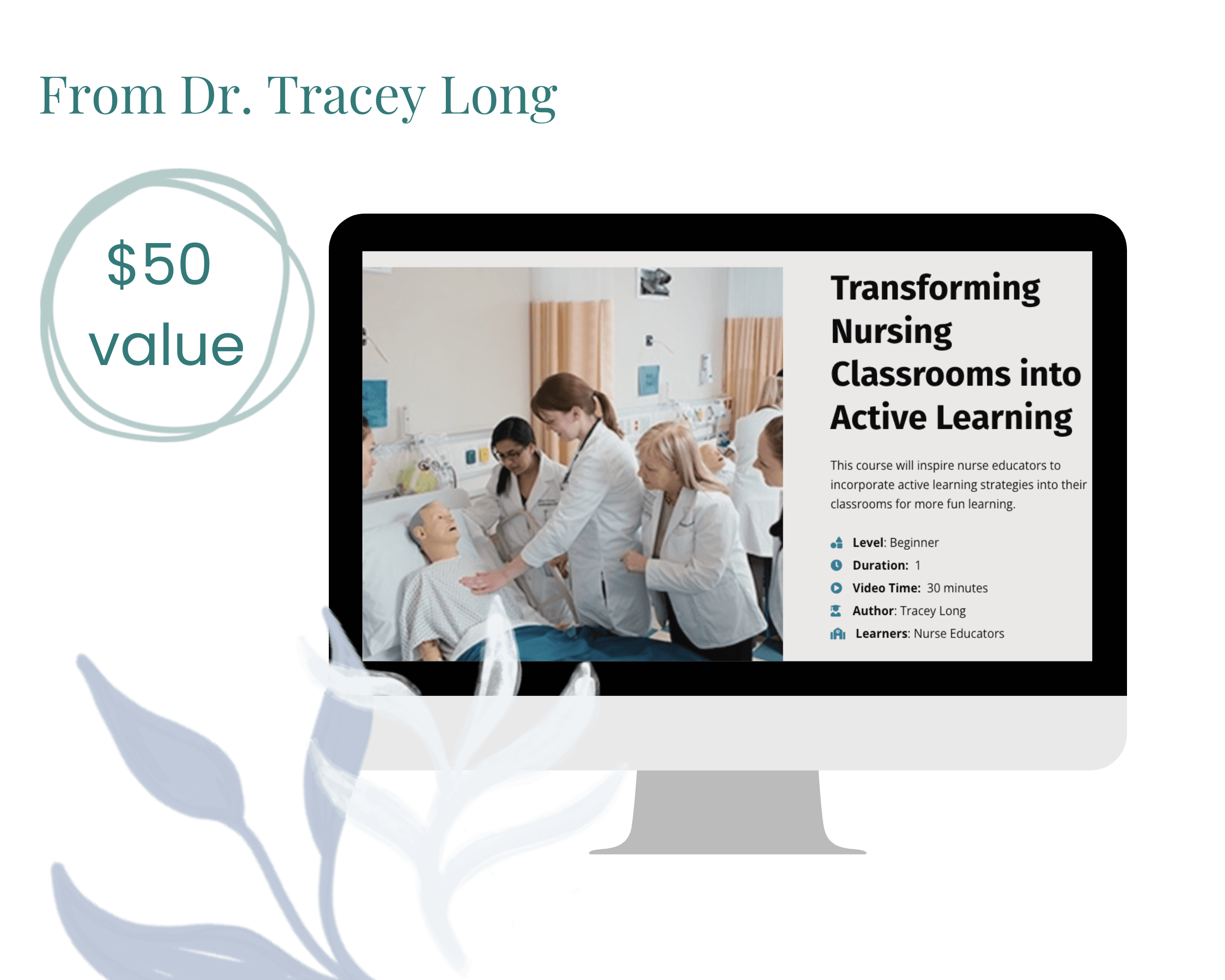 With the Nurse Educator Toolkit, you will have 12 months to watch at your own pace, review your notes, and make steady, sustainable progress toward your active learning classroom.